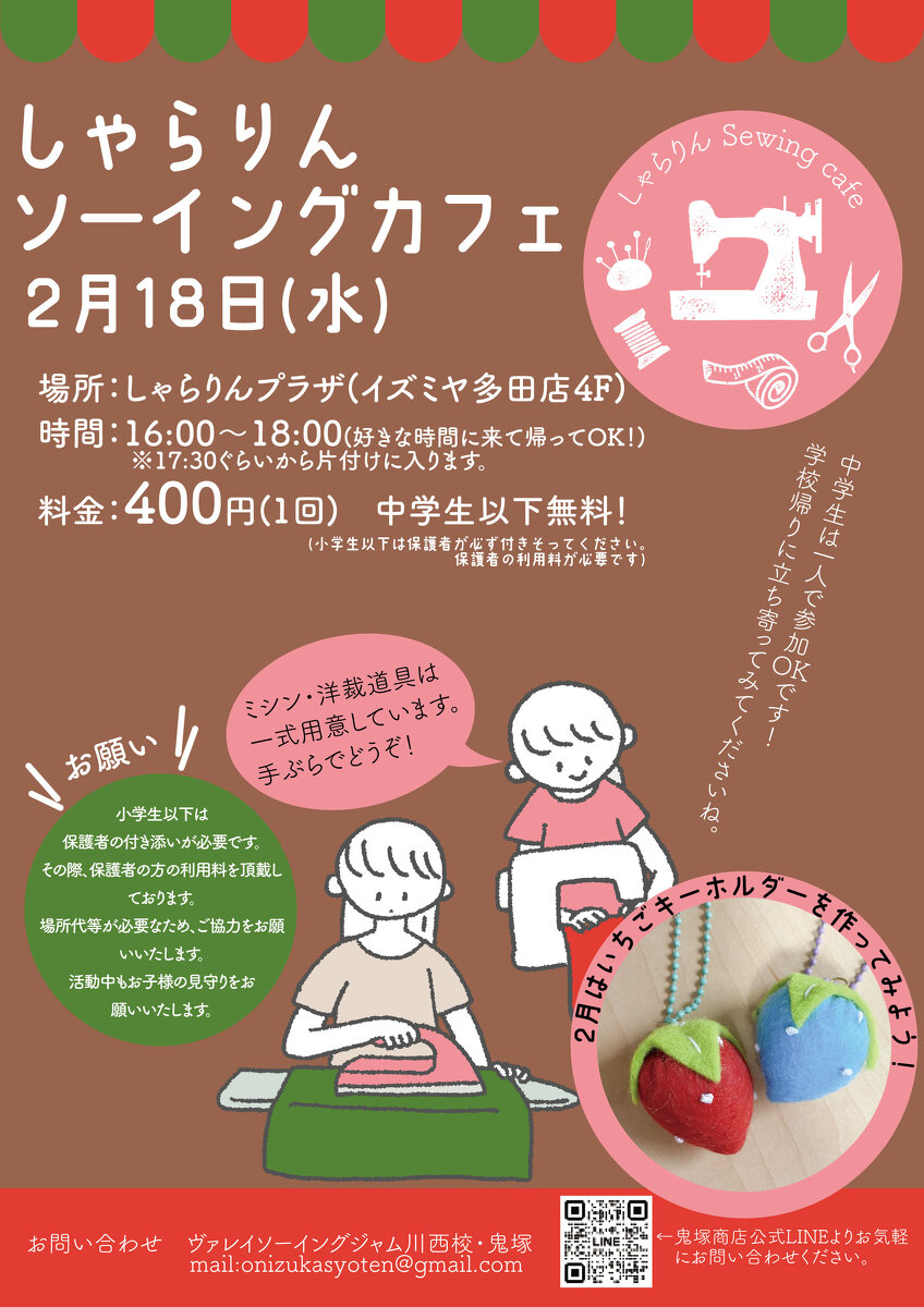 2026年2月の「しゃらりんソーイングカフェ」