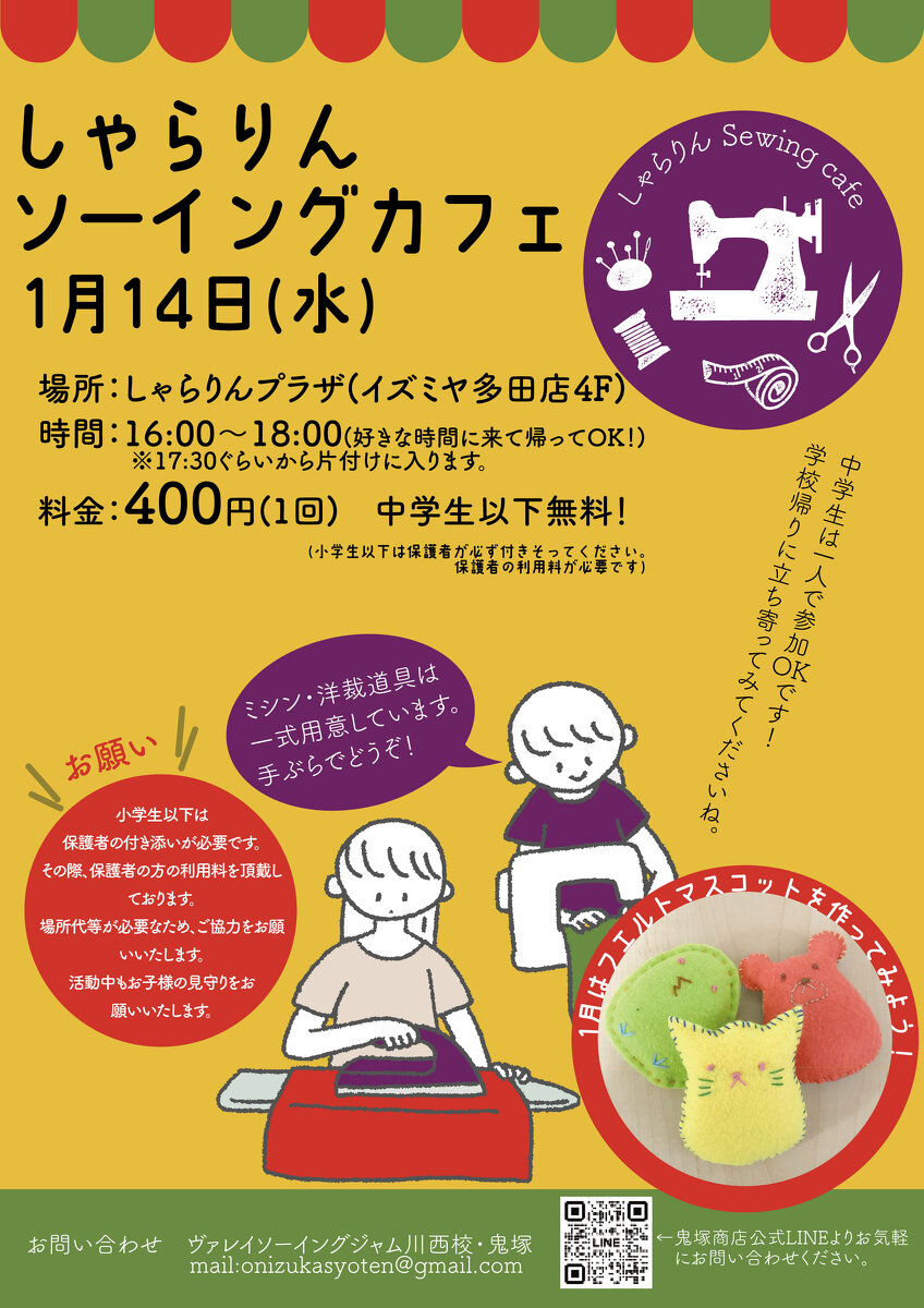 しゃらりんソーイングカフェ(ヴァレイソーイングジャム川西校)