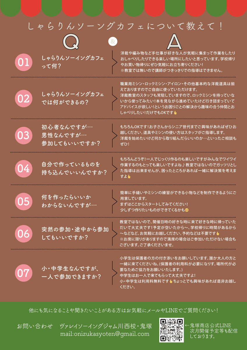 2月のしゃらりんソーイングカフェのお知らせです!